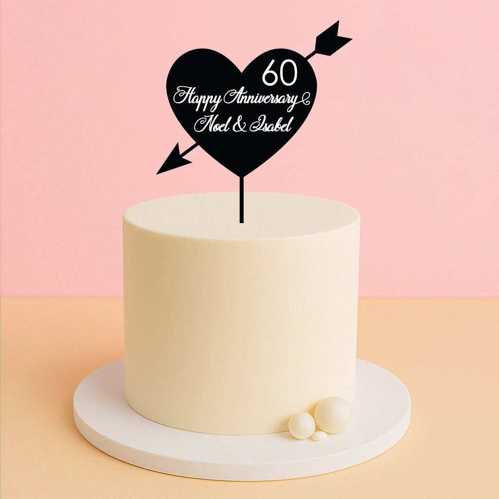 Love that lasts deserves a celebration that shines – and I’m here to do just that. I’m the Engraved Wedding Anniversary Heart Cake Topper, bringing timeless romance to milestone moments. Whether you’re celebrating 1 year or 60, I’m the personalised cake detail that honours a love story still going strong.