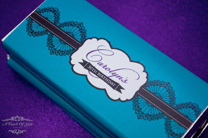 “I recently styled a dessert table for my 30th Birthday. I wanted something colourful and vibrant as the theme, along with a little bit of style! So I decided on purple party supplies matched with accents of black lace. I started off by creating a gorgeous purple wide format backdrop made entirely of crepe paper, and coordinated it with purple and teal satin table linen. Guests enjoyed some of my party sweet treats including macarons, cake pops, chocolate mousse and cupcakes!