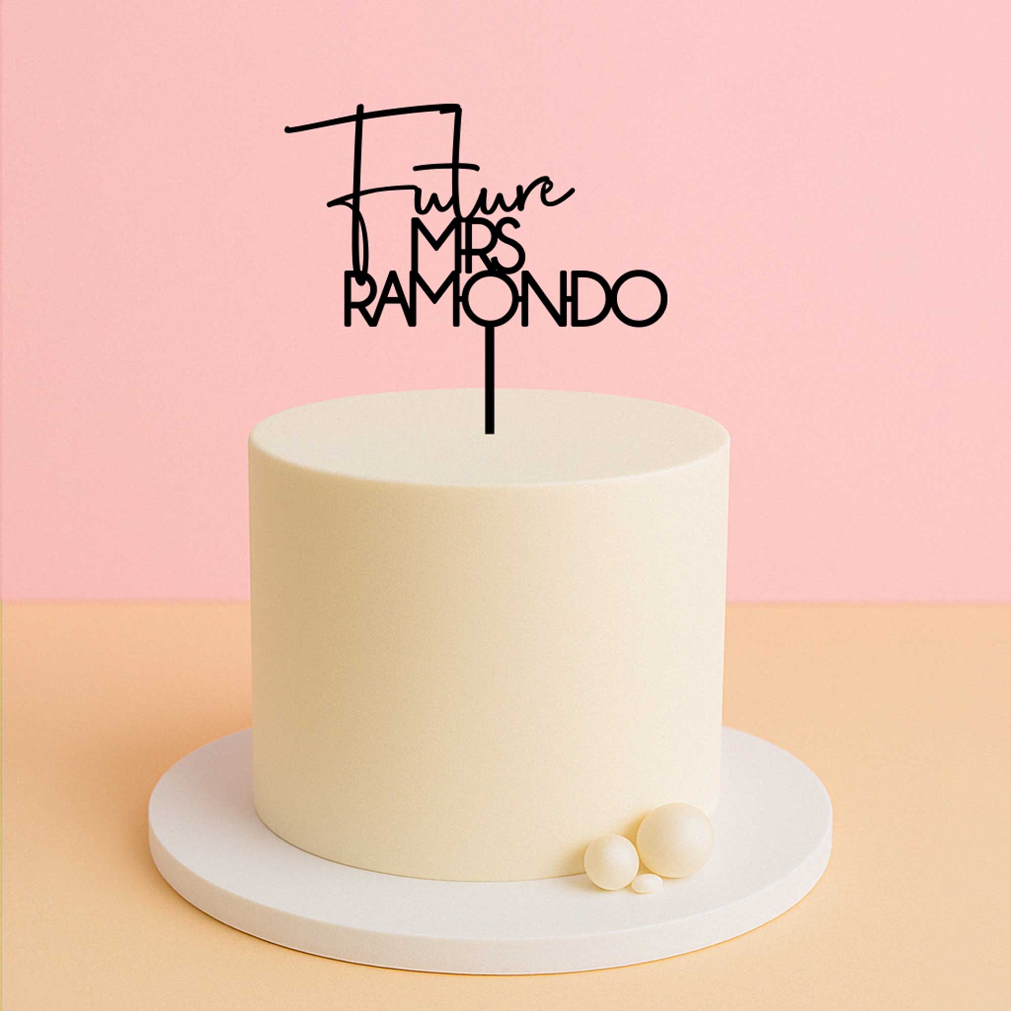 Hey fiancée – I see that sparkle on your finger! This Future Mrs Cake Topper is the stylish, sassy showstopper that brings your new surname to the centre of attention. Whether it’s for your bridal shower, hens night, engagement party or a surprise reveal cake, this topper says it loud and proud – you’re about to be the new Mrs [Your Surname Here]!