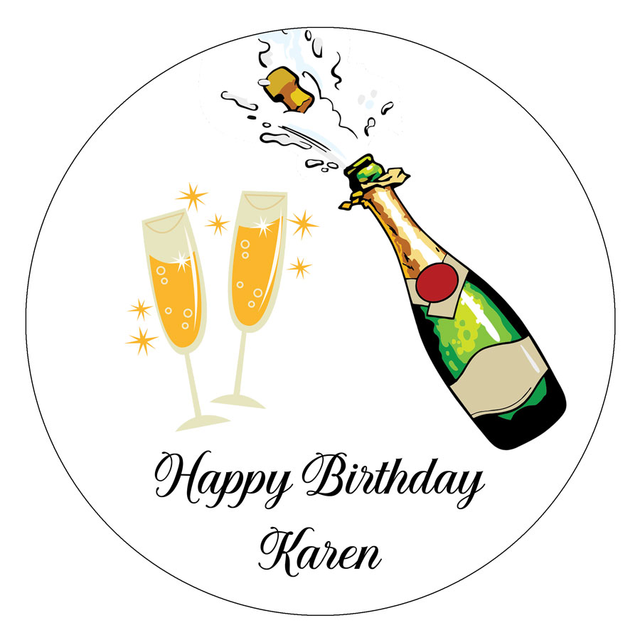 Champagne Bottle & Glasses Edible Images - Birthday Cake Icing - Cupcake or Cookie Icing