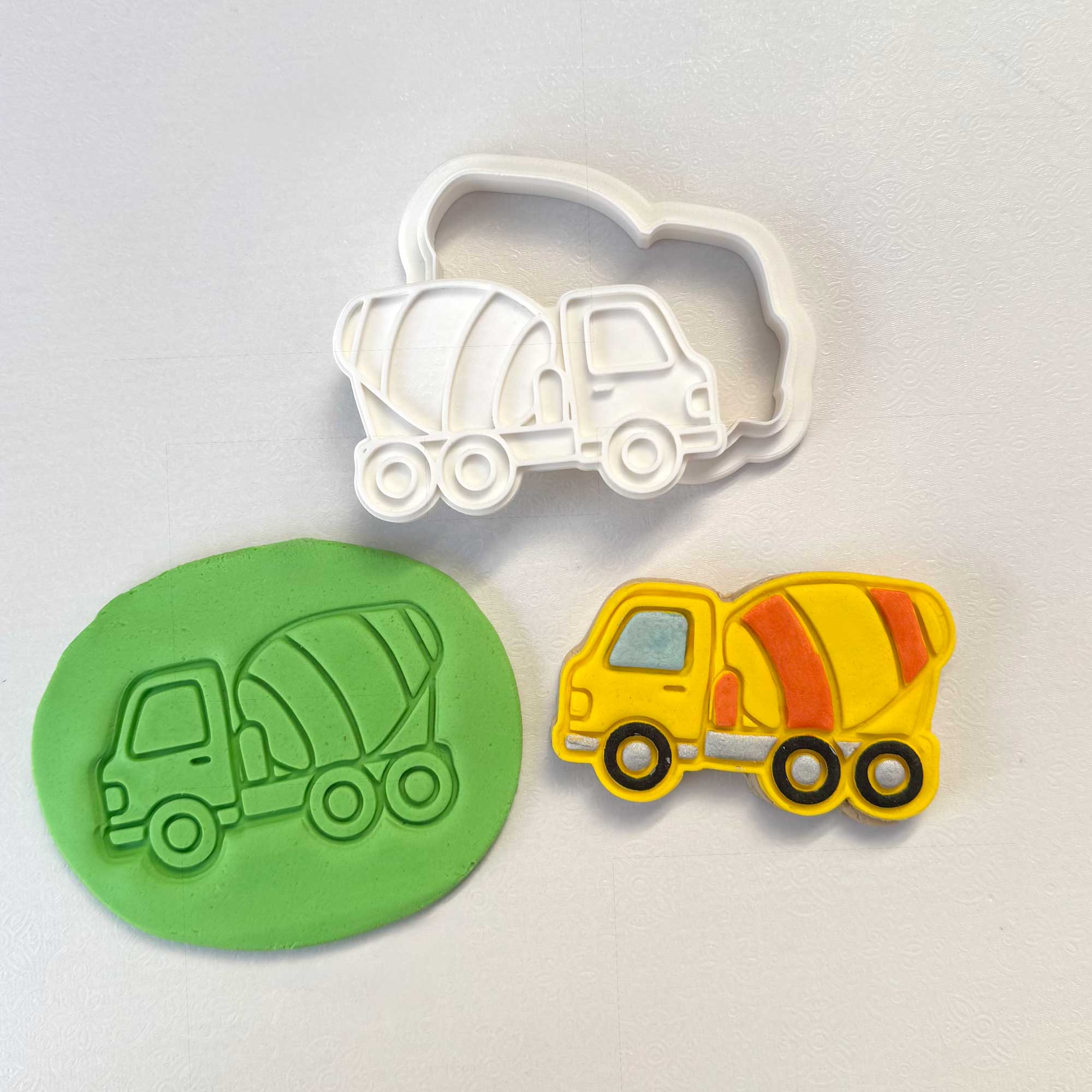 Yes – if you select the Cement Truck Cookie Stamp Set, it includes a matching cutter designed to align perfectly with the stamped shape for crisp, clean results.